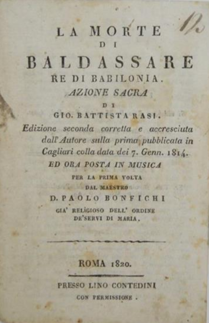 BUONFICHI [BONFICHI ndr] (padre Maestro), religioso nel convento de' servi di Maria e compositore di musica in Parma, pose in note il nuovo dramma di Climene ossia l'Innocenza protetta, che fu eseguito nel teatro di quella città il dì 21 gennajo del 1804, e sommamente applaudito. Ecco l'elogio che fu fatto a questo buon servita in un foglio periodico di quell'anno sotto la data di Parma. “Non si può senza divenire ingiusti, lasciare occulto il nome di chi ha composto, la musica del dramma di Climene: è questi il padre Maestro Buonfichi. Il felice successo di questa sua composizione ha superata la pubblica aspettativa in guisa che si può con franchezza asserire, che lo spirito di prevenzione non ha punto pregiudicato al reale ed intrinseco merito.” Trovasi in oltre di questo compositore nel Magazino di musica del signor Ricordi in Milano: La Lauretta, farsa a tre voci: e la Partenza di Glicera da Fileno, cantata. Abbiamo avviso che adesso altro, più non scrive il buon frate che musica per chiesa, la quale a giudizio degl'intendenti sa troppo dello stil teatrale. Egli vive tuttora in Parma.