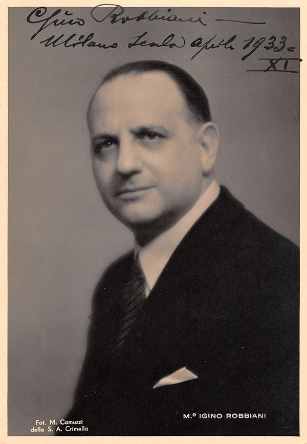 Igino Robbiani è nato a Soresina (Cremona) nel 1884. Fu avviato da prima agli studi classici. A quindici anni, mentre frequentava il Liceo, compose le parole e la musica d'un'opera in due atti: Agatodemon. Don Lorenzo Perosi vedutene alcune pagine scrisse una bella lettera al Robbiani, vaticinandogli un luminoso avvenire.
