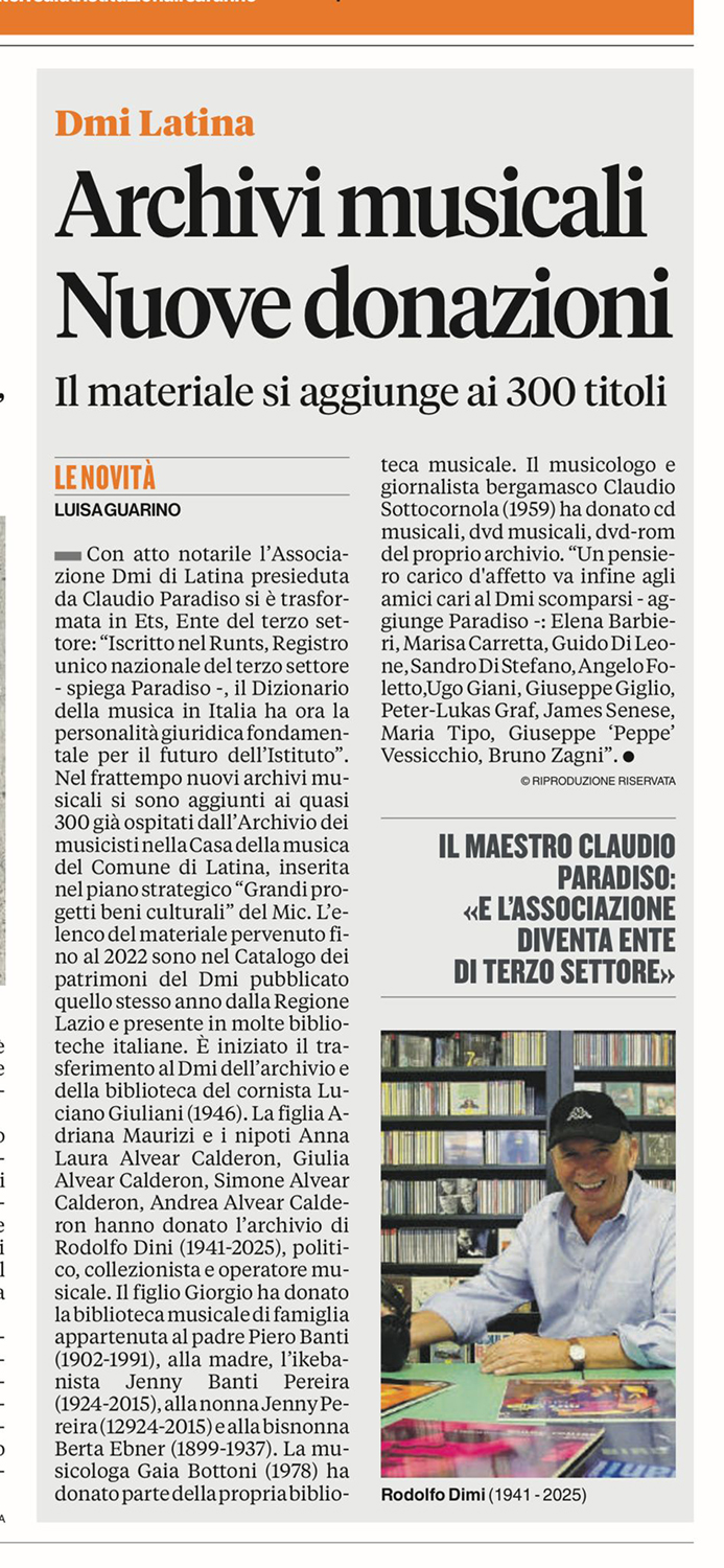 In questa pagina riportiamo solo una parte degli articoli usciti, via via, su molti quotidiani e periodici locali o nazionali, e questa raccolta sta a testimoniare un impegno sempe intatto e irremovibile verso il conseguimento di una istituzione stabile che possa assicurare al patrimonio musicale italiano una Casa per i propri contenuti e per la storia della musica in Italia.